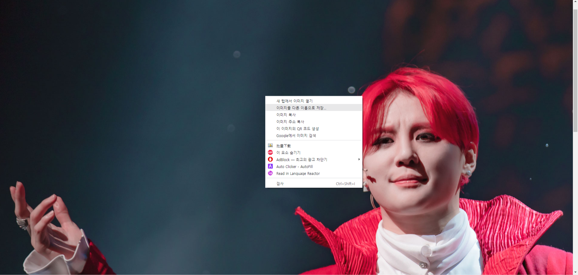 3. 새 탭에서 열린 이미지 위에서 돋보기 버튼을 눌러 최대한으로 확대한 뒤 '이미지를 다른 이름으로 저장'하기 버튼을 클릭하여 저장합니다.